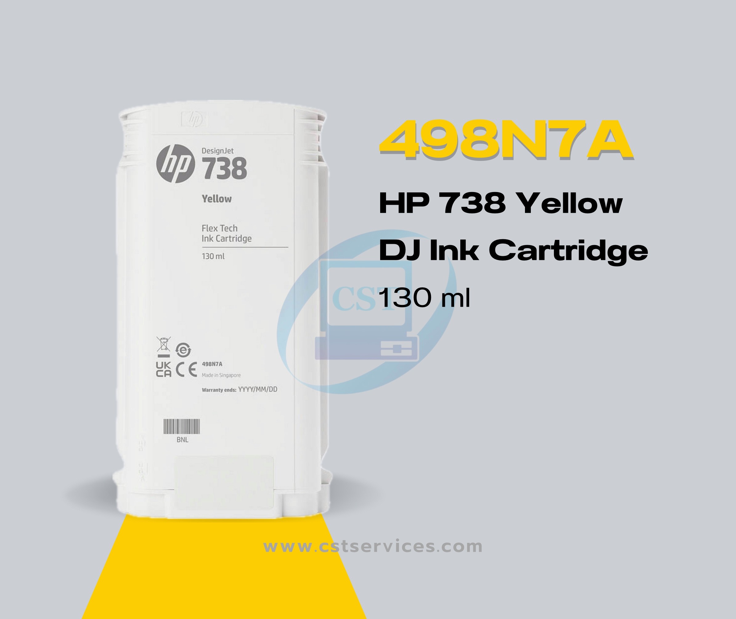 498N7A HP 738 130-ml Yellow DesignJet Ink Cartridge 130ML